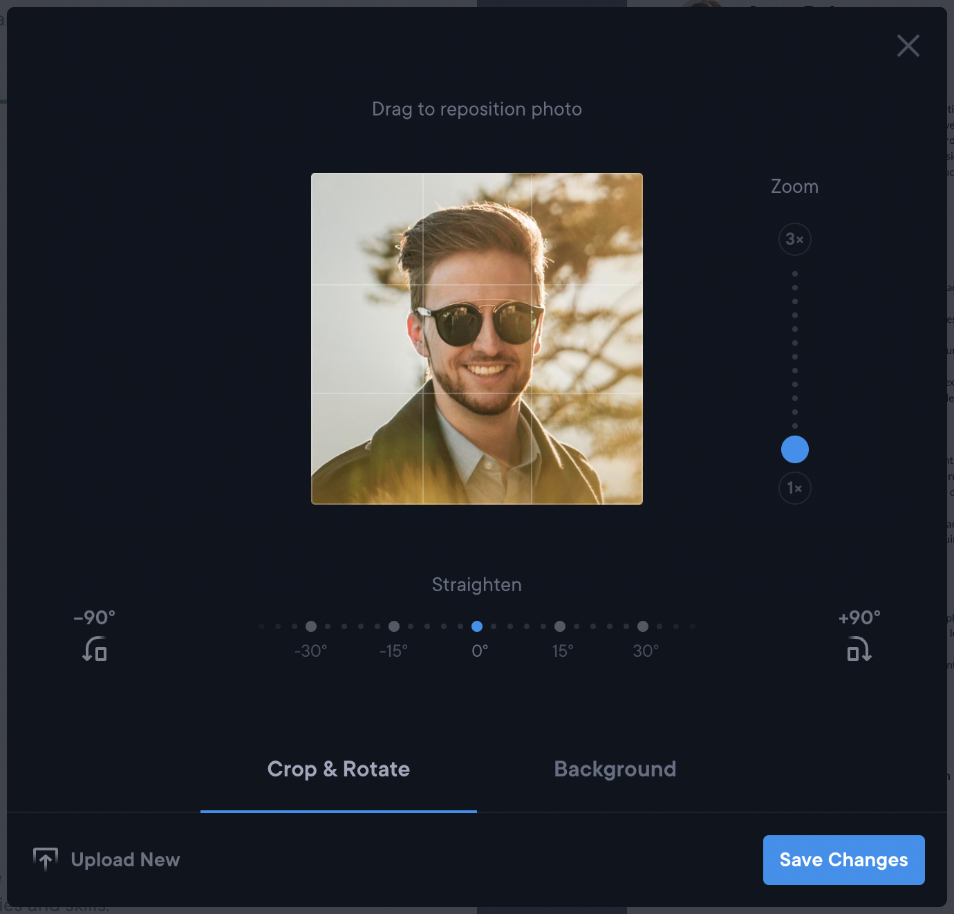 When you add your picture to your CV for the first time, it becomes accessible for use in other templates or versions of your CV. You have the option to modify the image, change its background or remove it altogether. You can remove your photo from the CV Builder or simply upload a different photo at any point in time.